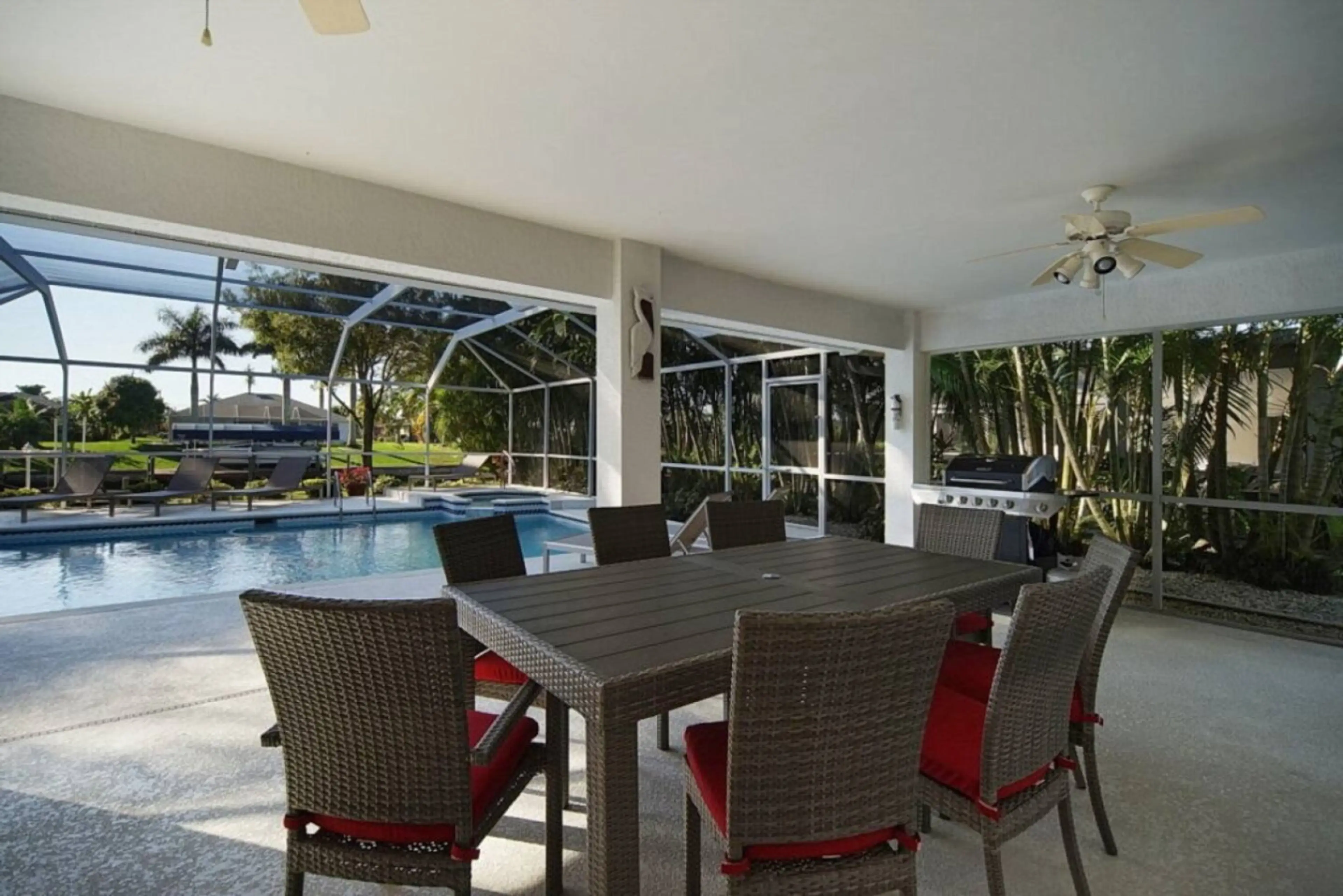 Enjoy the perfect Florida getaway at this elegant 4-bedroom villa in Cape Coral. Featuring 2 master suites, soaring vaulted ceilings, and a private heated pool with a spacious sun deck, it’s ideal for families, couples, or groups. Take in beautiful waterfront views, relax poolside, or launch your ne...